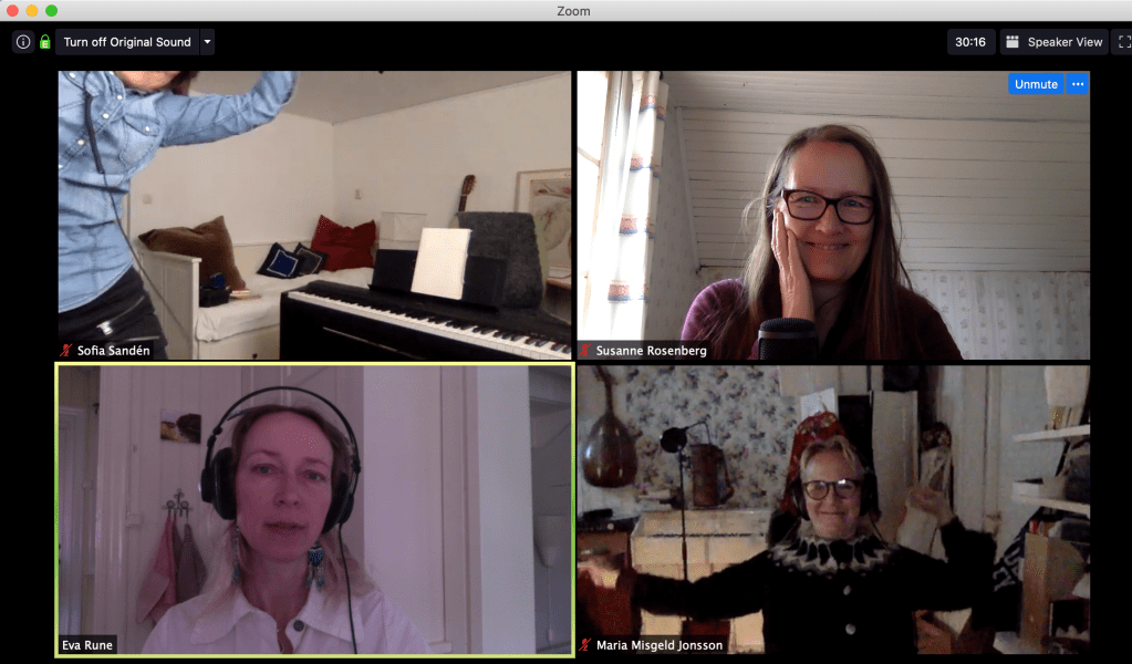 This week we been testing Folk Song Lab new method Imprint also in the inner circle of Folk Song Lab. This method actually fits quite well in the Corona days since it can be done through virtual meetings with the help of the excellent “Aloha” (www.elkaudio ) making it possible to sing together without latency! This is how we did it:
